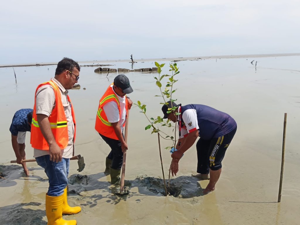 Cegah Abrasi,Pesisir Pantai Bagan Kuala,Desa Bagan Kuala Kecamatan Tanjung Beringin Kabupaten Serdang Bedagai ditanam 1000 bibit Mangrove